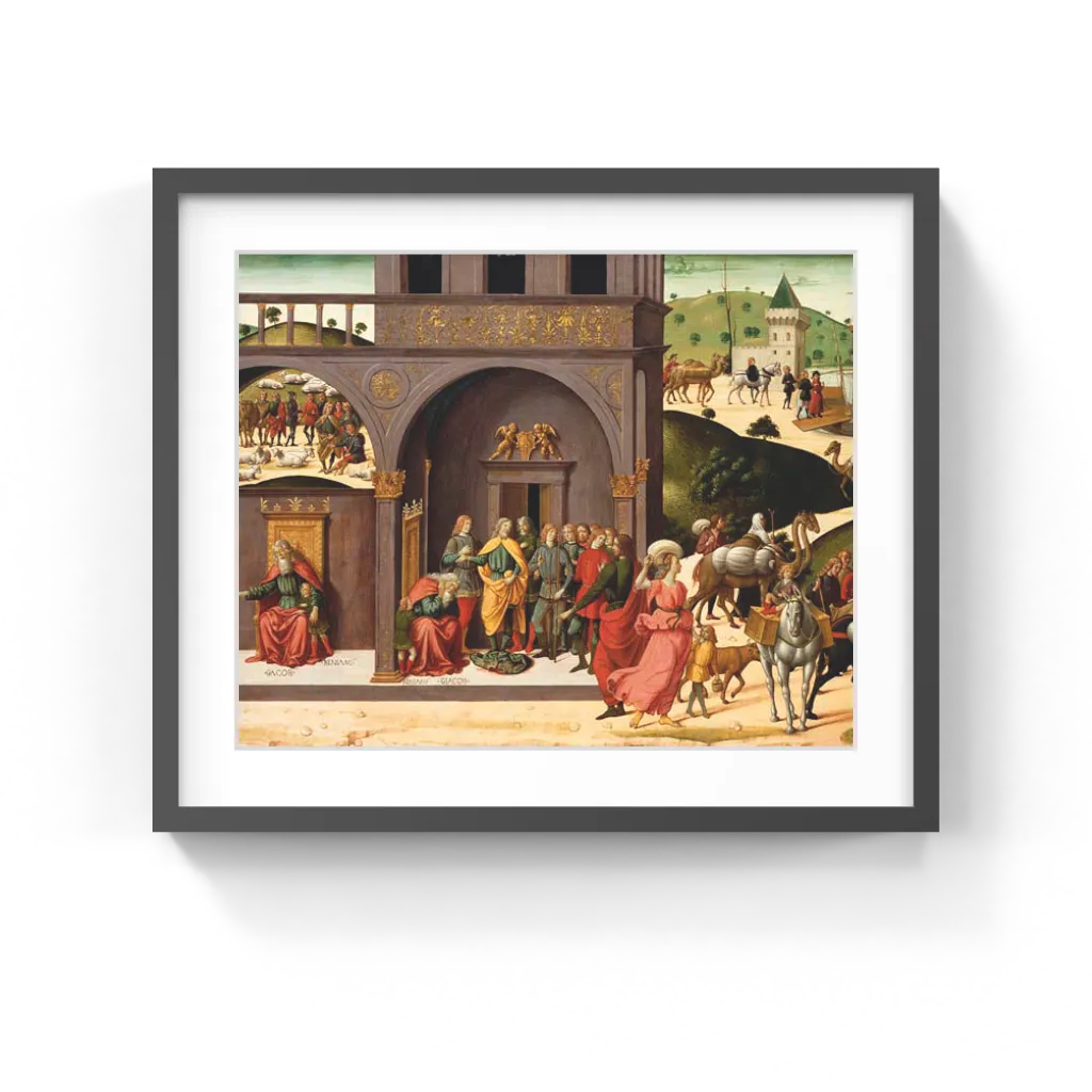 Joseph, the favorite son of the Hebrew patriarch Jacob. To make the story easier to follow, Biagio d'Antonio included inscriptions identifying the principal characters.