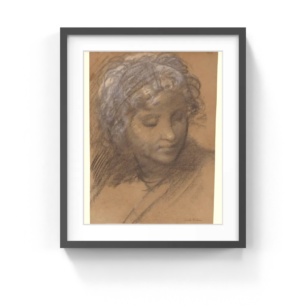 Giulio Cesare Procaccini (Italian (Bolognese), 1574–1625) Giulio Cesare Procaccini depicted the head of a woman whose gentle expression suggests the epitome of feminine gracefulness. He first drew her facial features with black chalk, then gently rubbed the chalk for added softness in some places. Next he rapidly sketched in her hair. He added broad strokes of white chalk to give her hair greater luminosity. Additional subtle white chalk provides highlights on her skin, whose tone is largely carried by the brown paper. His grace and soft technique follow in the tradition established by Correggio.