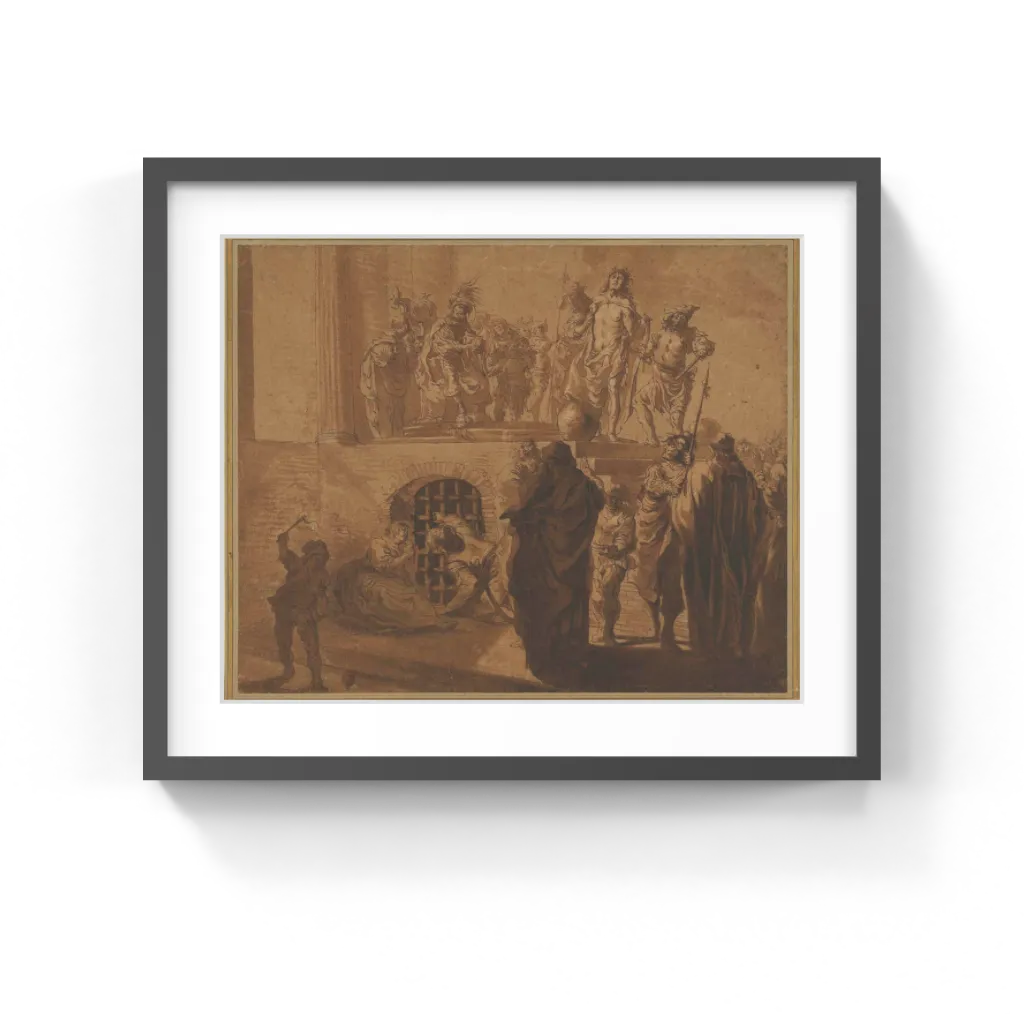 Nikolaus Knüpfer (Dutch, about 1603–1655) An angry crowd of onlookers gathers to observe Pontius Pilate's sentencing of Jesus. Having questioned Christ and found him innocent, Pilate wanted to release him, but he gave in to the bloodthirsty mob clamoring for crucifixion. To emphasize his lack of responsibility for the decision, Pilate washed his hands in public. This scene occurs on the raised platform outside the courthouse, while soldiers hold back the crowds at the foot of the steps.
