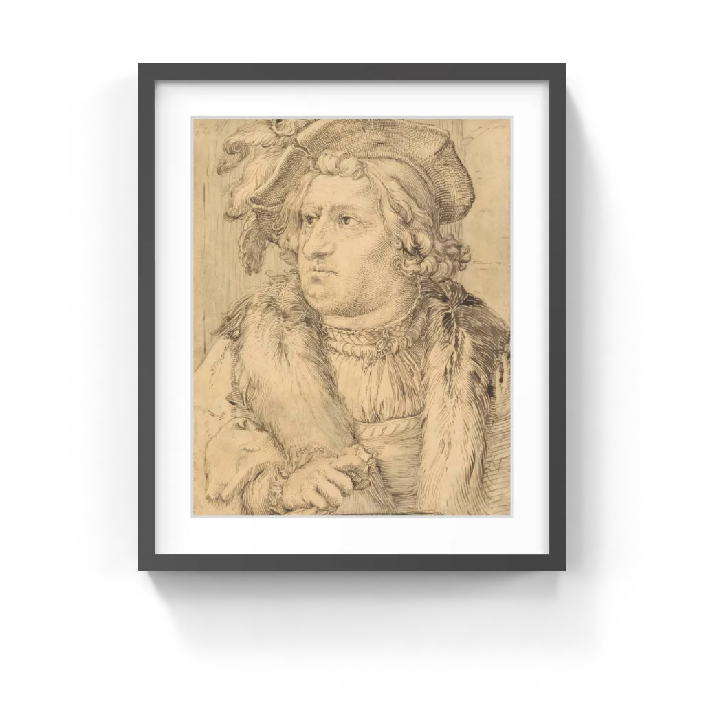 Goltzius had an uncanny talent of emulating the styles of the great masters, which he often displayed in these imaginary portraits. Here he took up Lucas van Leyden's manner, particularly in the flowing hatching of the fur collar and the rounded modeling of the fingers. Goltzius also gave pronounced emphasis to feathers, hair, and fur, aspects of his drawing that epitomized the styles of past Northern European masters. This imaginary portrait seems so lifelike and individualized that earlier scholars identified it with a specific person.