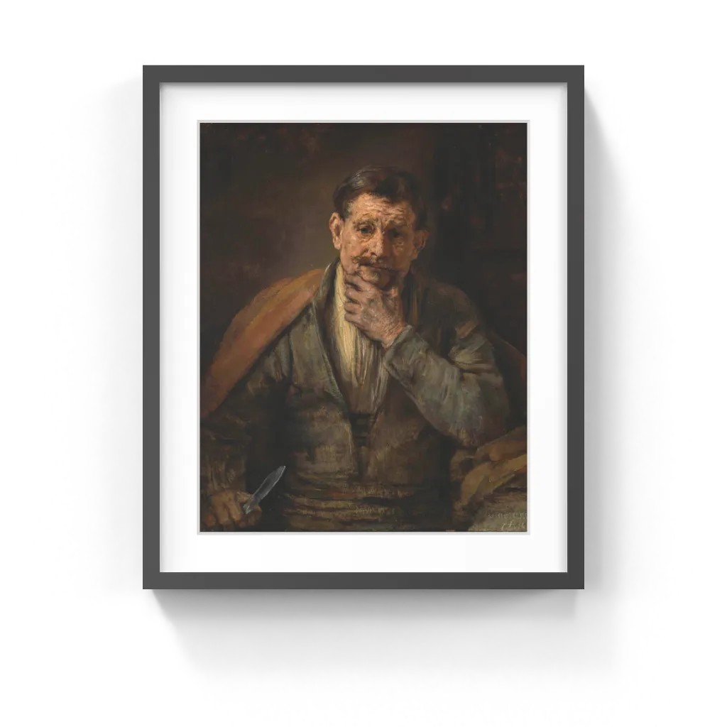 Rembrandt Harmensz. van Rijn (Dutch, 1606–1669) Made just eight years before Rembrandt's death, this painting depicts Saint Bartholomew holding a knife in his right hand, a reference to the fact that he was skinned alive when martyred. One of Rembrandt's neighbors may have posed as the model for the saint. By showing the apostle as a common man, Rembrandt gave the revered holy figure a tangible human quality, suggesting perhaps that holiness is part of daily life, a view in keeping with the religious atmosphere of mid-1600s Amsterdam.