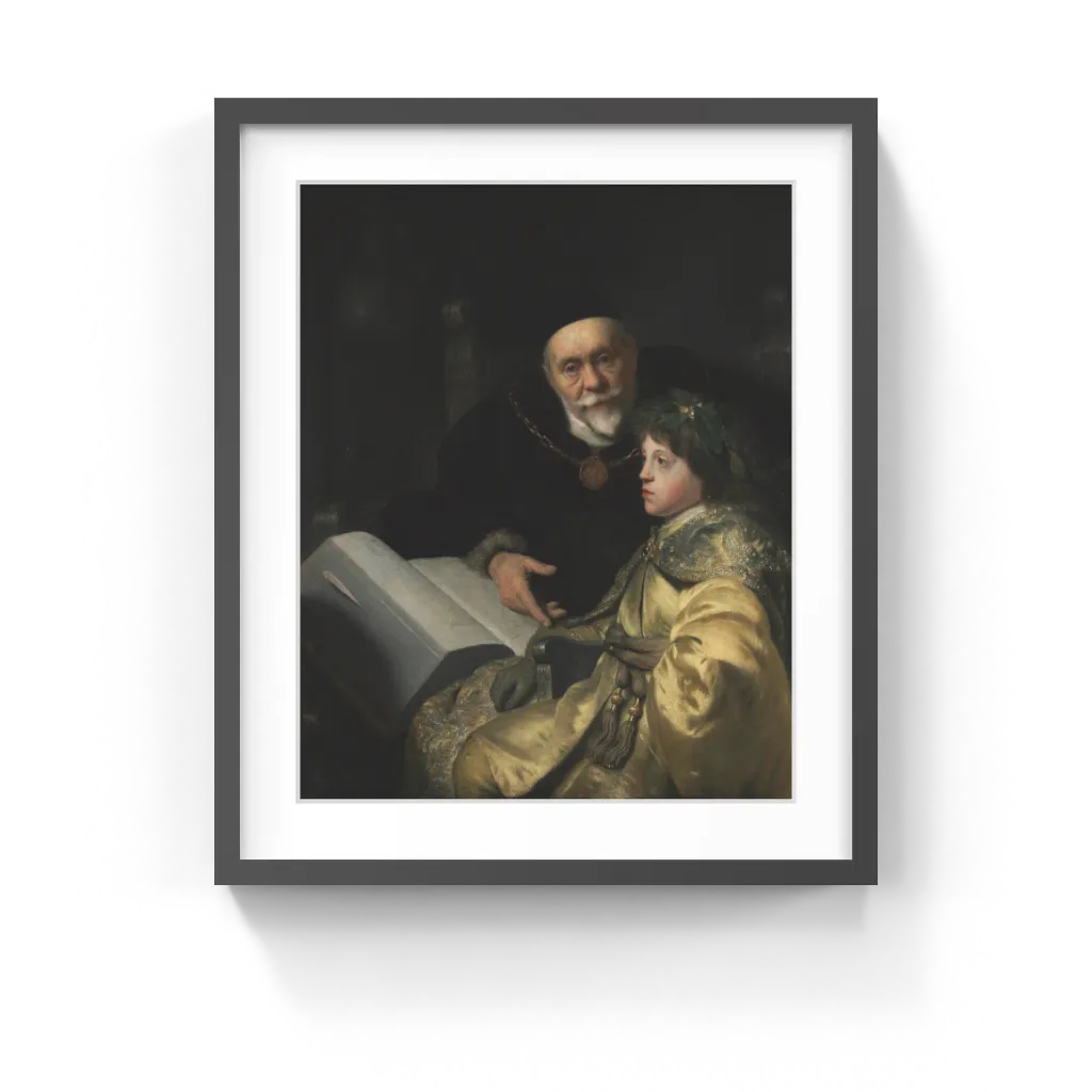 Jan Lievens, who shared Rembrandt's interest in historical portraits featuring characters in fanciful costumes, here depicted Prince Charles Louis of the Palatinate being taught by his tutor Wolrad von Plessen. Previously thought to be a biblical depiction of Eli instructing Samuel, current research reveals that these figures were meant to allude to the classical figures of Aristotle instructing the young Alexander. Both Prince Charles Louis and Alexander the Great were about fourteen years old when they received instruction from their respective mentors.