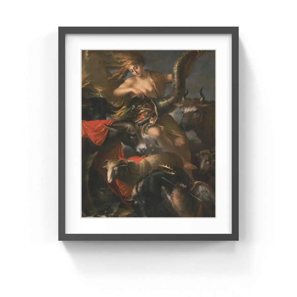 Salvator Rosa (Italian, 1615–1673) A personification of Fortune bestows symbols of wealth, status, and power on dumb animals who neither need nor deserve them. Fortune is usually represented with a blindfold, but Salvator Rosa showed her fully aware of her favors. Similarly, the cornucopia is usually shown facing upward; by depicting it overturned, Rosa expressed reckless extravagance.