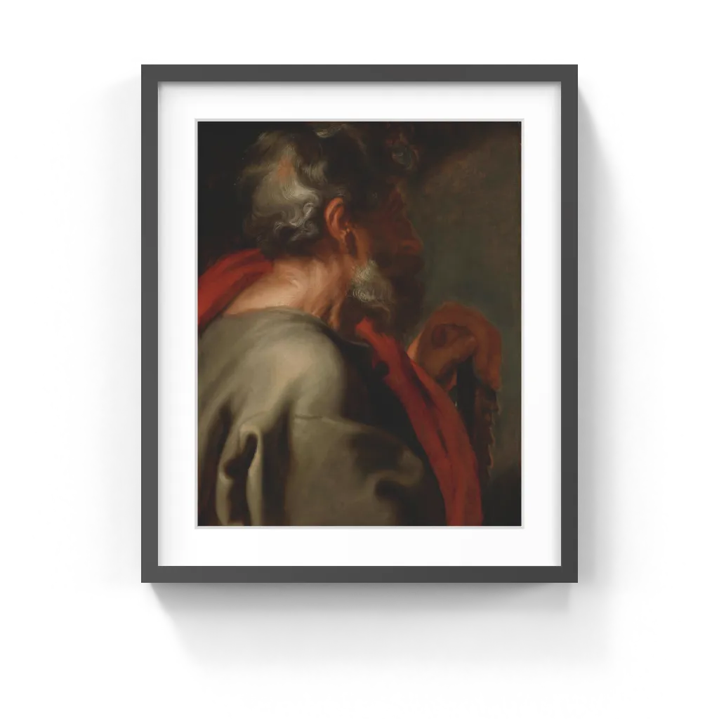 Anthony van Dyck (Flemish, 1599–1641) Inspired by a series of apostles that Rubens painted in 1610 for the Duke of Lerma, Spain's chief minister, Anthony van Dyck set about making his own similar series, including this painting of the Apostle Simon. Simon is shown bust-length, his head turned so that his profile is "lost" or partially obscured by shadow. His left hand rests on a saw, the instrument of his martyrdom. Light falls from the top left, creating highlights and deep shadows across his head, face, hand, and clothing. Draperies are broadly painted and richly colored, while the apostle's hair, eyebrows, and beard are finely painted to convey their wavy, silky texture.