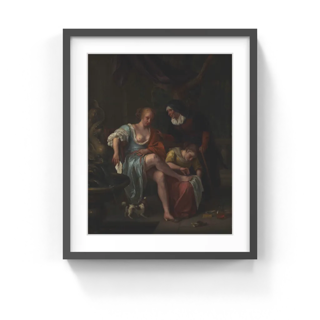 Jan Steen (Dutch, 1626–1679) Bathsheba stares brazenly out at the viewer while a maidservant trims her toenails. King David, who saw her beauty and desired her, sent her a summons to appear at his palace. Although she was married, Bathsheba was forced to comply.