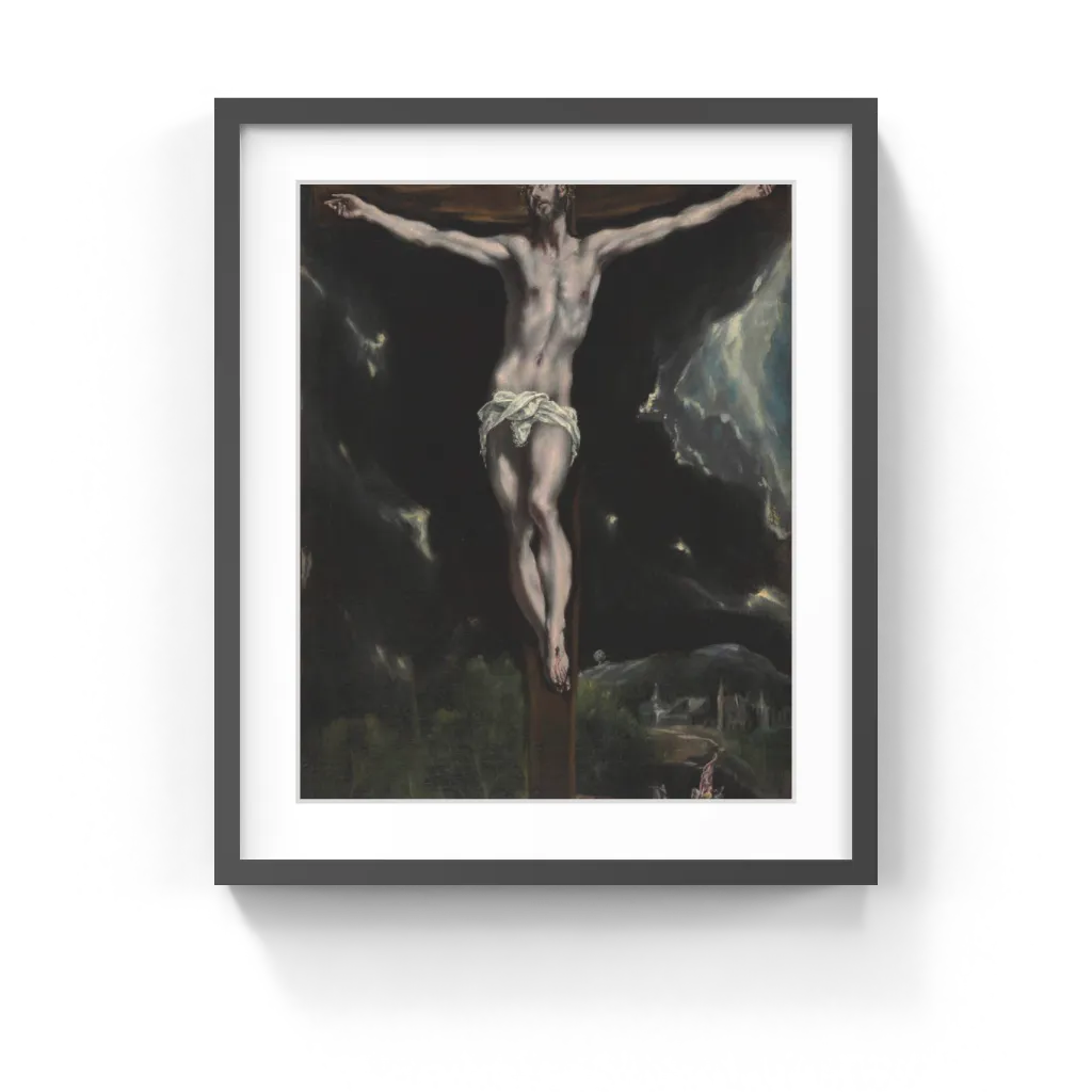 In this painting, El Greco combines the iconic power of the crucifix with the expressive power of landscape painting. He sets the cross atop Golgotha, the "place of the skull," with Jerusalem looming in the background. He eliminates the other characters from the biblical narrative, encouraging the viewer to contemplate Christ and his suffering.