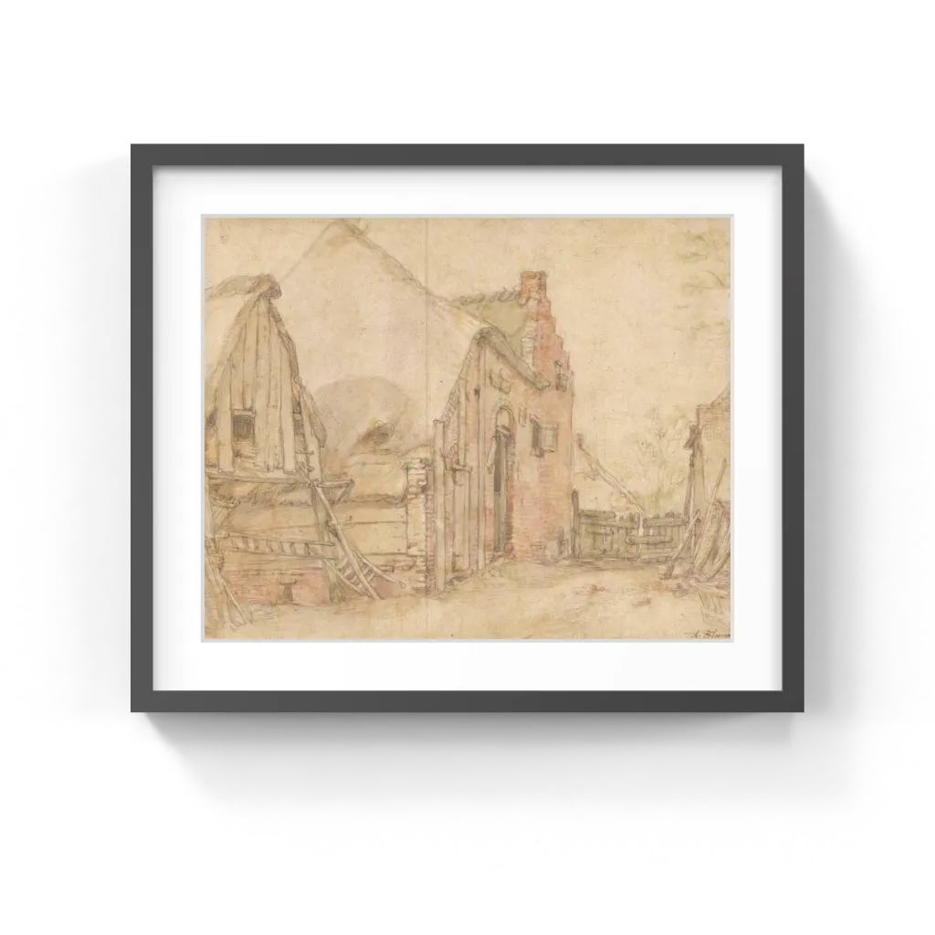 Abraham Bloemaert (Dutch, 1564–1651) Abraham Bloemaert drew the weathered boards, crumbling bricks, and sagging thatch in loving detail. A haphazardly repaired fence forms the focal point of the composition. His application of pink wash to the cottage walls gives the dilapidated farm courtyard an exceptional lyrical charm.