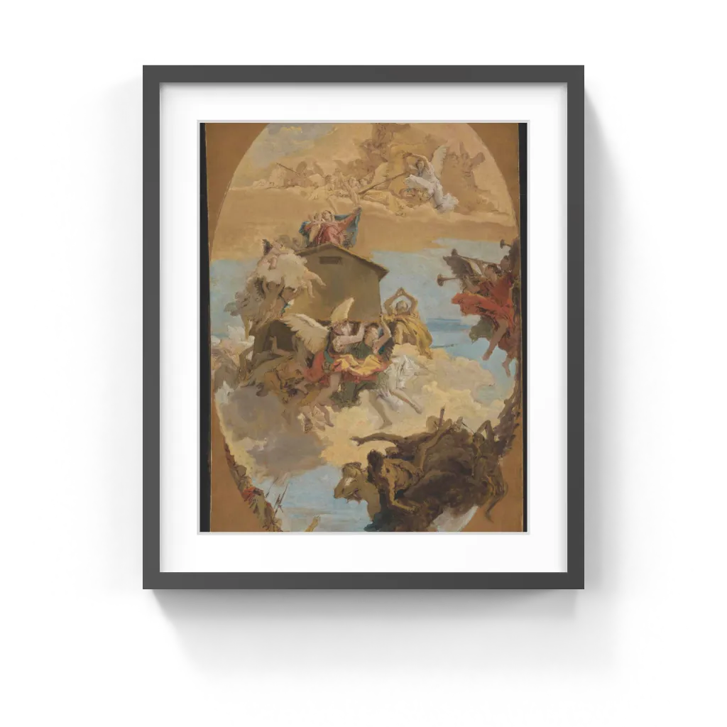 Giovanni Battista Tiepolo (Italian, 1696–1770) Giambattista Tiepolo made this final preparatory study for a large illusionistic fresco that covered the ceiling of the Scalzi church in Venice. The fresco was destroyed by bombing in World War I. According to a fifteenth-century legend, when the Virgin Mary's house in Nazareth came under threat by invading Saracen armies, it was miraculously transported in 1291 from the Holy Land to Loreto, a small town on Italy's Adriatic coast.