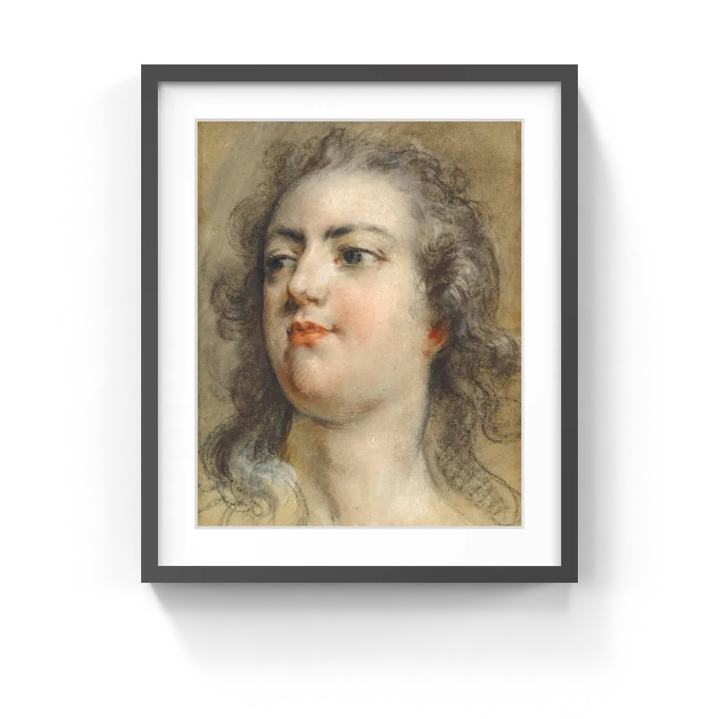 Using fine strokes of black chalk, Le Moyne created the young king's gently curling hair. Delicate lines of pastel give soft