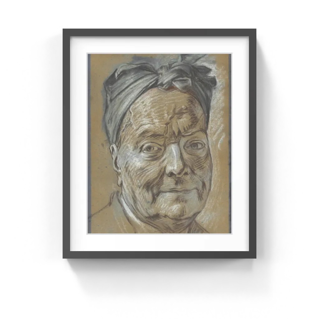 De Silvestre appears in an unguarded moment without his wig. The scarf tied around his head suggests he is working in his studio. La Tour candidly recorded his 73-year-old subject's blood vessels, wrinkles, and moles, giving De Silvestre realistic human qualities that formal portraiture of the period did not often capture. He and La Tour were friends, which also contributes to the intimacy of the portrait. Made seven years before de Silvestre's death, this drawing strikingly conveys the physical effects of age.