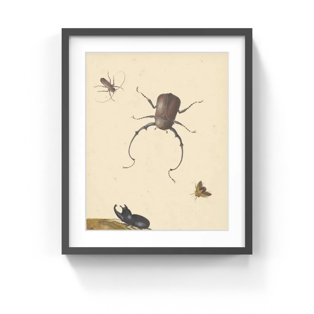 The insects might appear scientifically precise, but in fact Struyck takes artistic liberties; these insects would not have lived in the same natural environment. In his day, art and science were not considered two separate disciplines, and Struyck, in fact, was neither a professional artist, nor a scientist. He was a noted mathematician and likely created amateur drawings such as this not for sale, but for his own enjoyment.