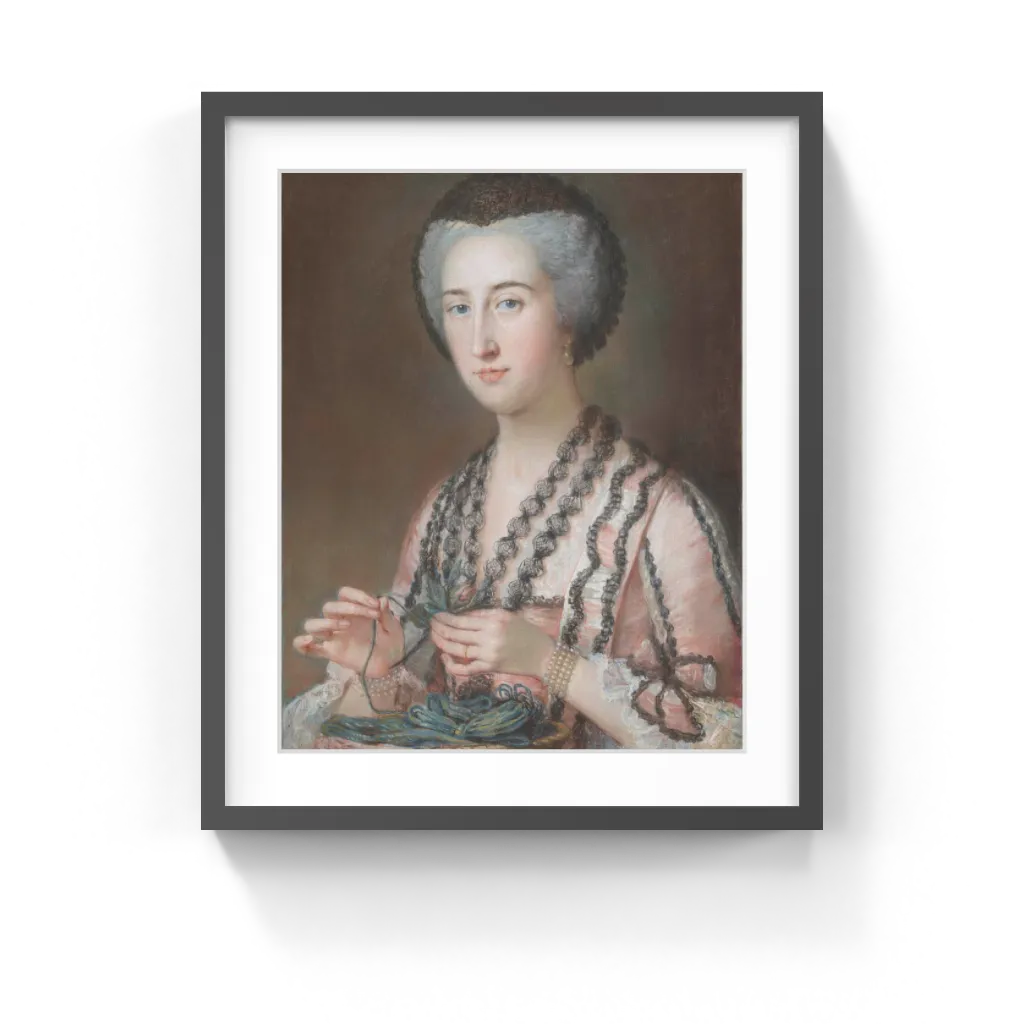 Attributed to Mary Hoare (English, 1744–1820) Susannah Hoare (1732 - 1783) was the elder daughter of Henry Hoare II from his second marriage. After the death of her first husband, Susannah resided at Stourhead, the family seat, with her father. Wearing a widow's cap, she is dressed in half-mourning with a pink silk gown lined with delicate black ruffles.