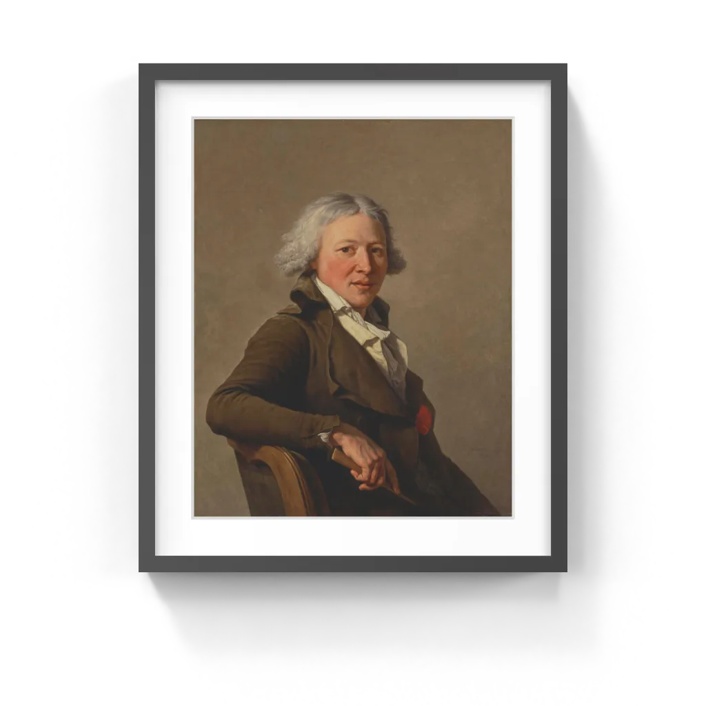 Vincent's restricted, sober palette, typical of revolutionary-period male portraits, is likewise subtly nuanced, ranging from the cool, light grays of the background, the warm browns of Roland's jacket and the creams and whites of his waistcoat and shirt, to the ruddy flush of his cheeks and the red of the honorific ribbon pinned to the inside of his jacket, which offer a counterpoint to the dull green of the chair back. Throughout Vincent's masterful paint handling is evident, from the lightly brushed background that imparts a wonderful sense of space, to the firm, sculptural modeling of Roland's head and hand, whose three-dimensionality is emphasized by the painter's sophisticated modulation of light and shade. The resulting sense of physical acy, of vital presence, is extraordinary, and is only strengthened by the tight framing of the composition, the proximity of the sitter to the picture plane, and the suppression of superfluous details.