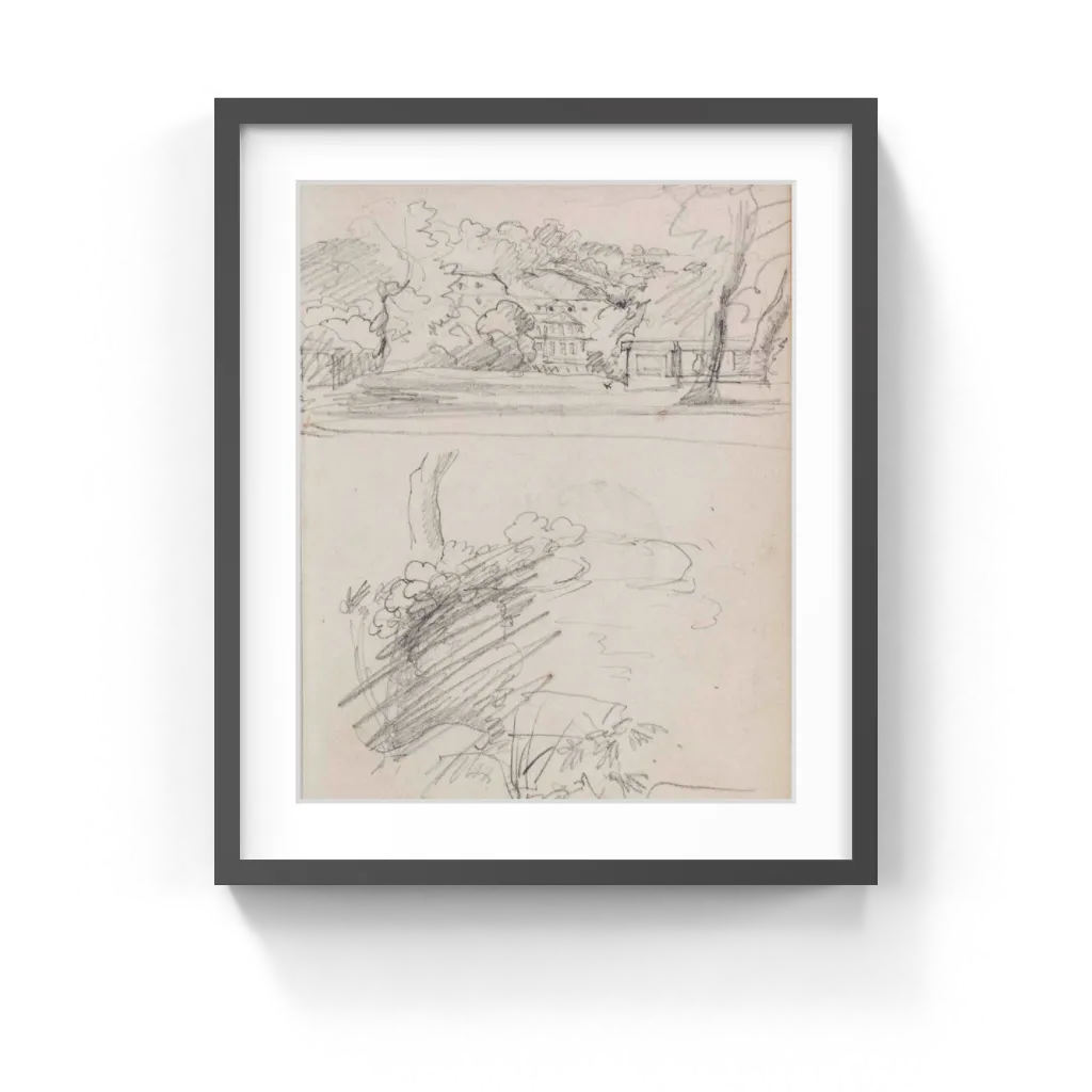 View of a Country House and Studies of Bushes and Foliage Gm-13512101