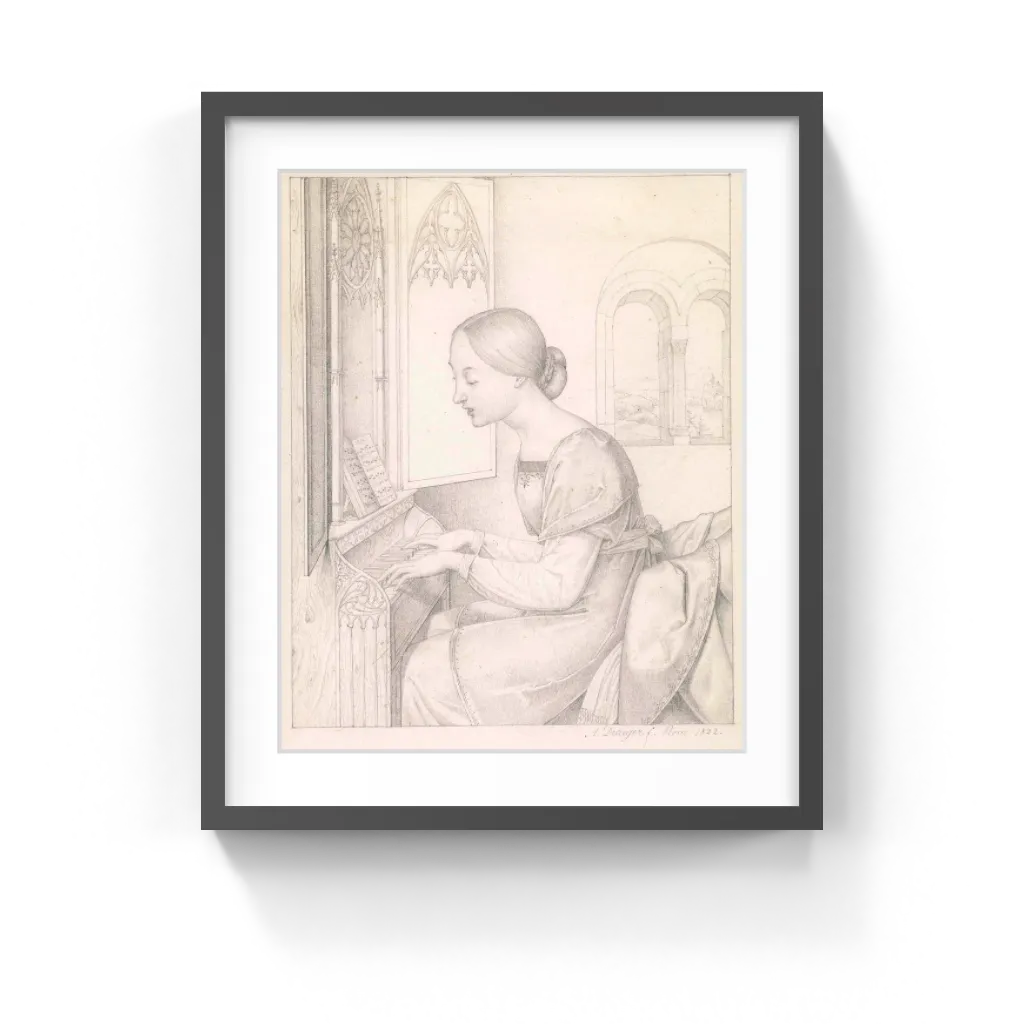 Joseph Anton Draeger (German, 1794–1833) After studying at the Dresden Art Academy, Draeger moved to Rome, where he led a life dominated by art and fellowship with other young German artists. He made this finely wrought drawing in preparation for a painting of Saint Cecilia.