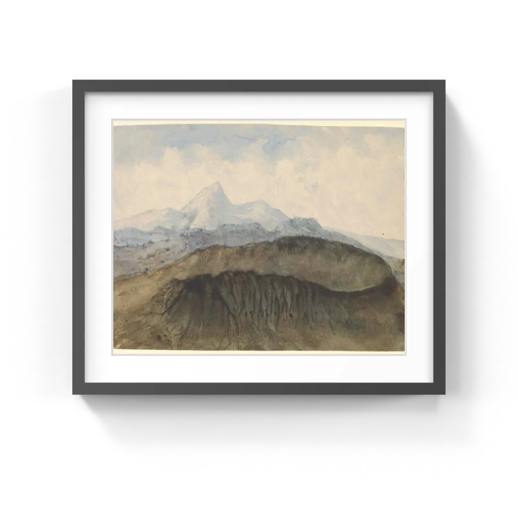 So declared artist Aurore Dudevant, known as George Sand, a key figure of French Romanticism and a prolific author of bucolic fictions. A testimony to landscape's vitality as a genre in the late 1800s, this sensitive plein air (outdoor) study of an extinct volcano in Auvergne--in the heart of France--illustrates how Sand celebrated virgin areas of the country's scenery for their authentic character and beauty. Here the greens and browns of the crater subtly contrast with the blues and pinks of the background, where mountains are visible in the distance. George Sand visited Auvergne on several occasions, transcribing her impressions; she could not help but compare the region with the Pyrénées, the mountain range close to her home: "The Auvergne seemed to be an adorable land. Less vast and less sublime than the Pyrénées, but with the same freshness."