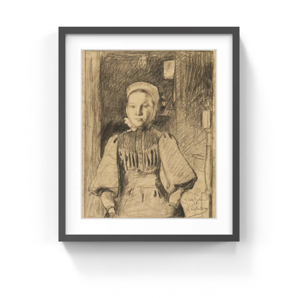 Charles Milcendeau (French, 1872–1919) The drawing represents an interior with a maid or the daughter of a farmer from the French Vendée region, more precisely from Les Sables-d’Olonne, a seaside town by the Atlantic Ocean. Very few details of the interior are given: a staircase to the right, and possibly a lamp behind her.