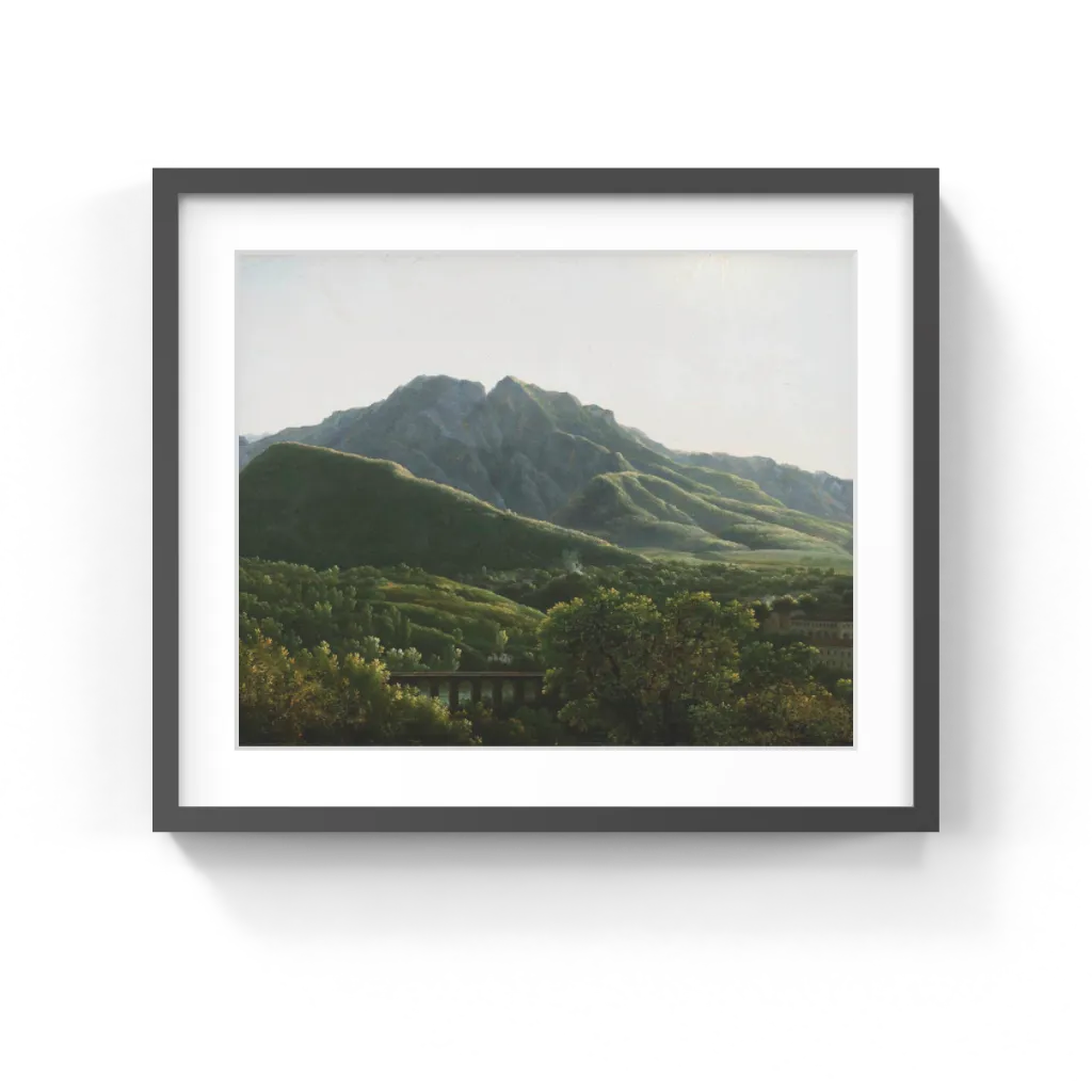 Jean-Joseph-Xavier Bidauld (French, 1758–1846) Jean Joseph-Xavier Bidauld painted this landscape while on a five-year sojourn in Italy, where he developed his distinct style by making studies directly from nature. This southern Italian view encompasses many features common in his work; a stretch of fertile terrain, picturesque architecture, a source of water, and a majestic, craggy mountain in the distance. Silvery morning light dances across the undulating planes, rendered in soft blues, greens, and browns, and highlighted with autumnal yellows. The extraordinary freshness and precision that characterizes this painting conveys the immediacy of nature's impression on Bidauld, and explains why, upon hearing his name, Jean-Baptiste-Camille Corot was moved to exclaim: "Bidauld! Ah! But gently, now, he wasn't just anybody, he was at times truly a master, and one of the finest. Certain of his small canvases are masterpieces, and full of fine example and sound counsel for all of us, young and old alike."