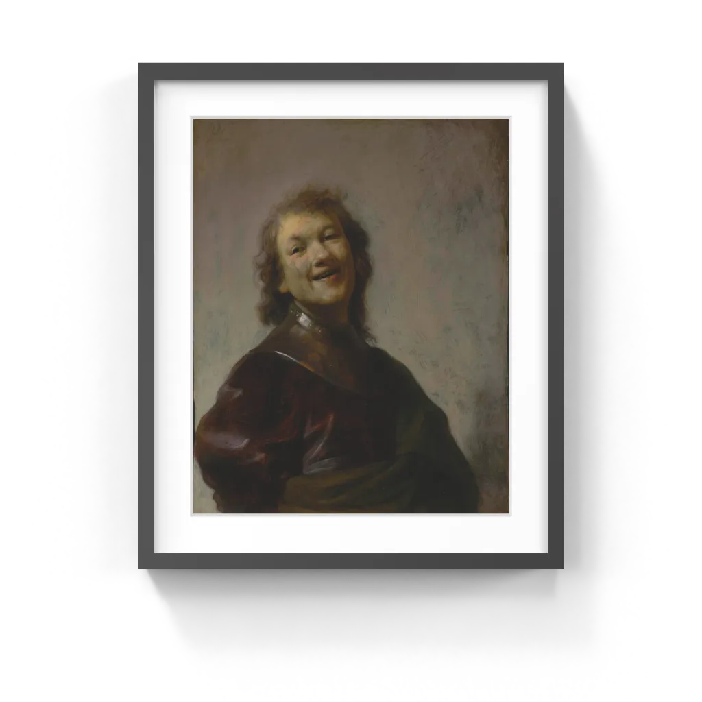 Rembrandt Harmensz. van Rijn (Dutch, 1606–1669) Intently interested in the expression of human emotion, Rembrandt often used himself as his own model in his early years as an independent master in Leiden. Here, in a small and freely painted work, he appears in the guise of a soldier, relaxed and engaging the viewer with a laugh.