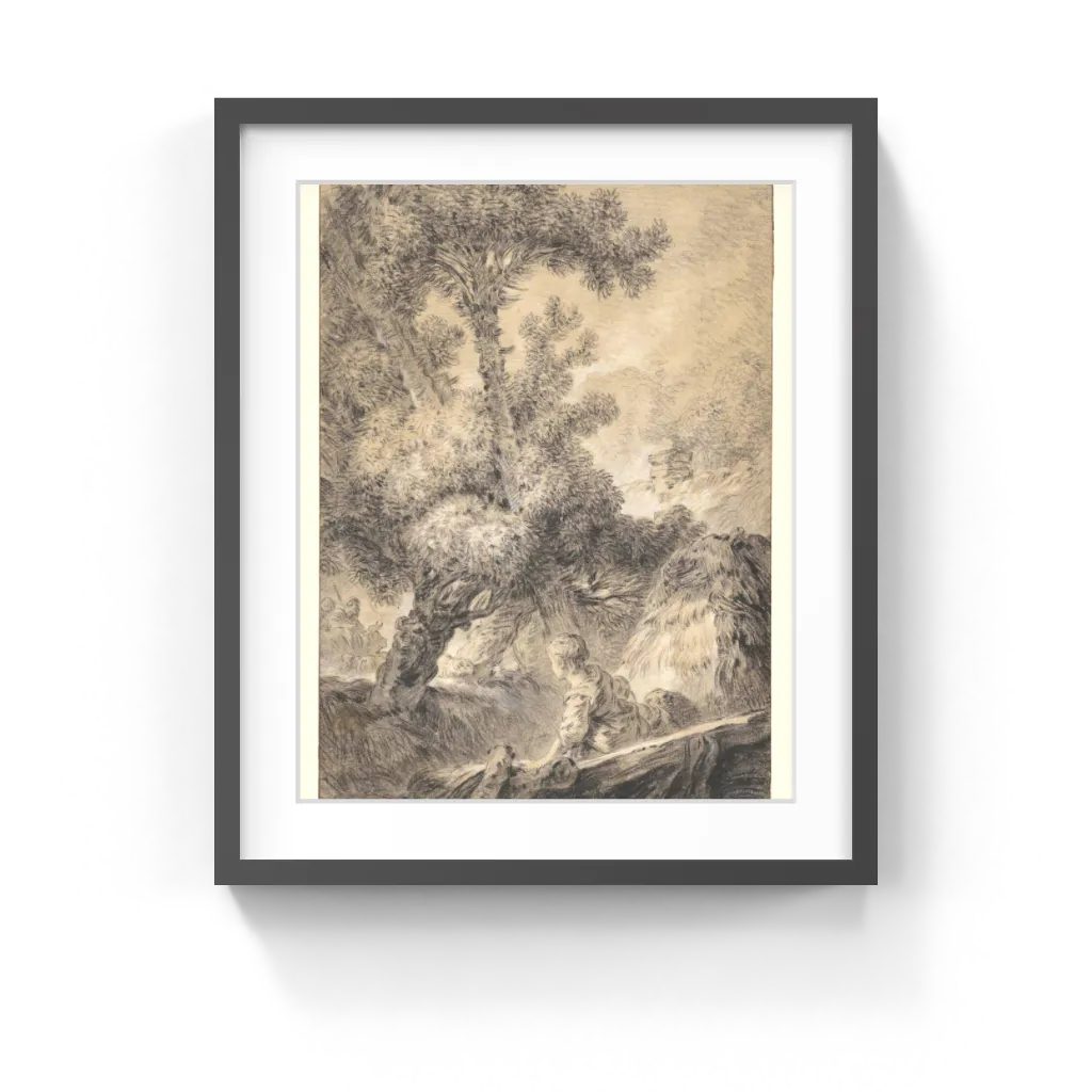 The sheet dates from the year François Boucher died, and it shows the extent to which Huet adopted his predecessor's sensuously pictorial technique, which often involved using different kinds of chalk.