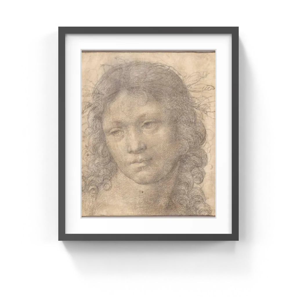 Lorenzo di Credi (Lorenzo d'Andrea d'Oderigo) (Italian (Florentine), about 1456–1536) Head of a Young Boy Crowned with Laurel is a magnificent example of Lorenzo di Credi’s appealing draftsmanship. The drawing is a highly finished cartoon (a study for design transfer) for the head of a prominent youthful shepherd in Credi’s Adoration of the Shepherds (Uffizi, Florence). One of the largest and most important works of his career, the altarpiece was commissioned by the Florentine wool merchant Jacopo Bongianni for a chapel in the church of Santa Chiara, Florence, and likely dates between 1500 and 1505.