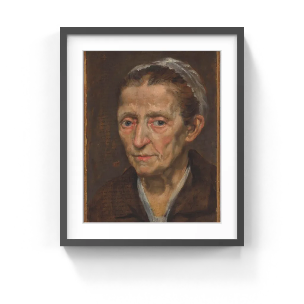 Annibale Carracci (Italian, 1560–1609) This intense life study of the head of a woman is marked by its deep sense of engagement and its focus on the dynamic observation of human physical character. Wearing simple everyday working clothes, the sitter is represented at close to life size, and seems a captured likeness of breathing reality, gazing steadily through blue-gray eyes. Every aspect of the topography of the sitter's face, its lighting and coloring are thoroughly examined and then swiftly rendered in loose strokes. The virtuoso brushwork of the sketch is emphasized by the artist through the use of a sheet of old accounting ledger paper (on which discernable words refer to food supplies). Here the strategic application of paint allows the text to show through selectively in spectacular fashion, particularly noticeable in the careful handling of the shadows of the eye sockets, where a few words and marks are left visible as virtual eyebrows.