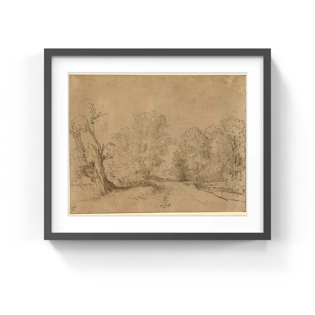 About ten years earlier, Rembrandt had begun drawing many landscapes. He roamed the area around Amsterdam, creating drawings and etchings that captured the Dutch countryside and its light and atmosphere, always with an economy of technique. As in this informal drawing, his landscapes express spontaneity and freshness while appearing like complete representations of the scenes he observed.