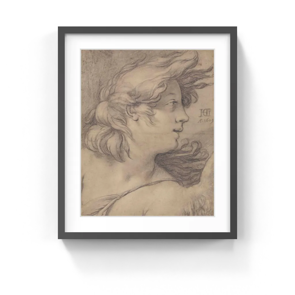Hendrick Goltzius (Dutch, 1558–1617) The large head of an angel in profile nearly fills the sheet of paper on which it is drawn. The grand scale of the image as well as the broad handling of the chalk are characteristic of Hendrick Goltzius's tendency to explore concerns more usually associated with painting in his later drawings. The figure in this drawing closely resembles the Archangel Gabriel in Goltzius's painting in the Pushkin Museum in Moscow; like this drawing, the painting is signed and dated 1609.