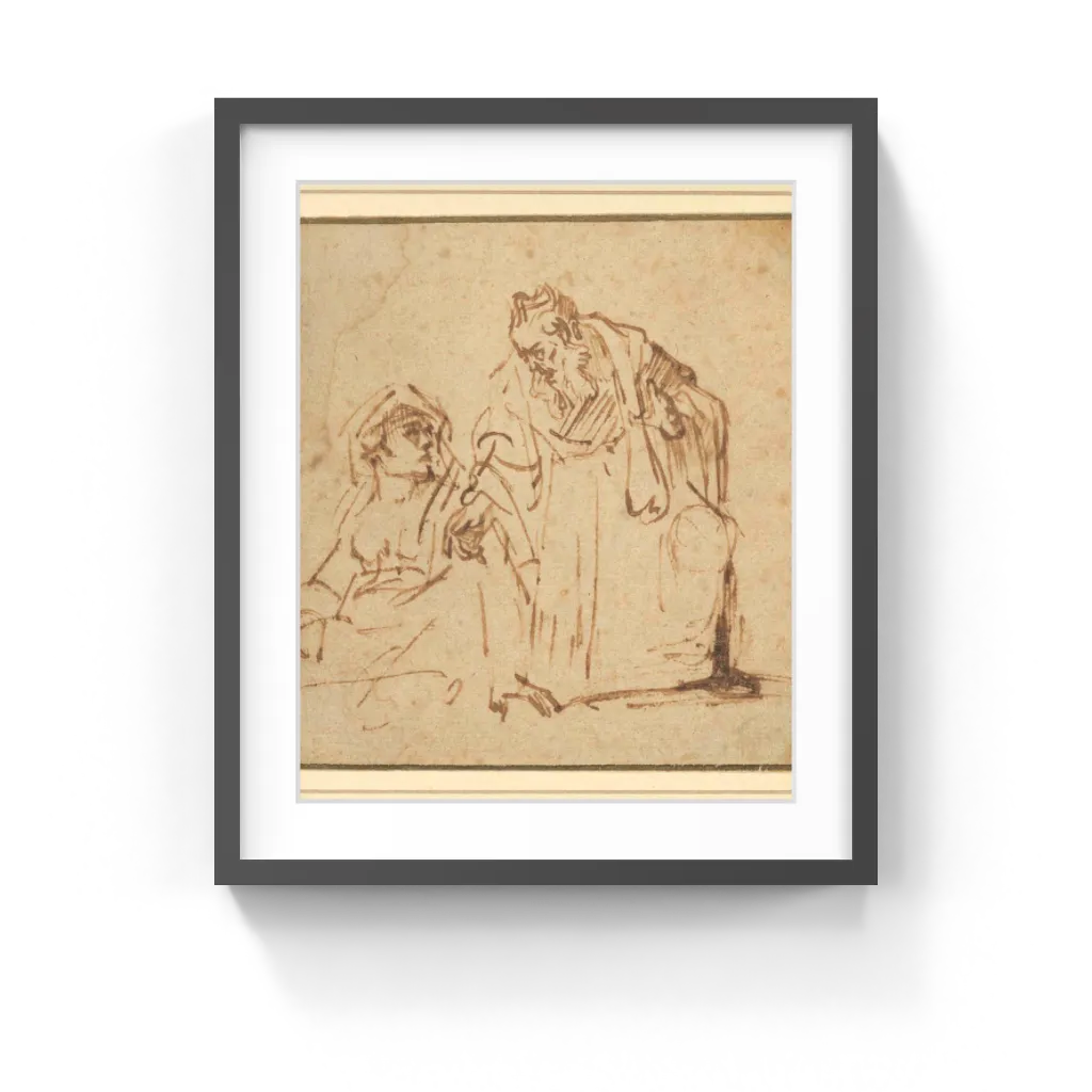 Rembrandt may have depicted an early event in the Old Testament story of the prophet Samuel. When Samuel's future mother Hannah moved her lips while silently praying to God to give her children, the high priest Eli reproached her, thinking she was drunk.