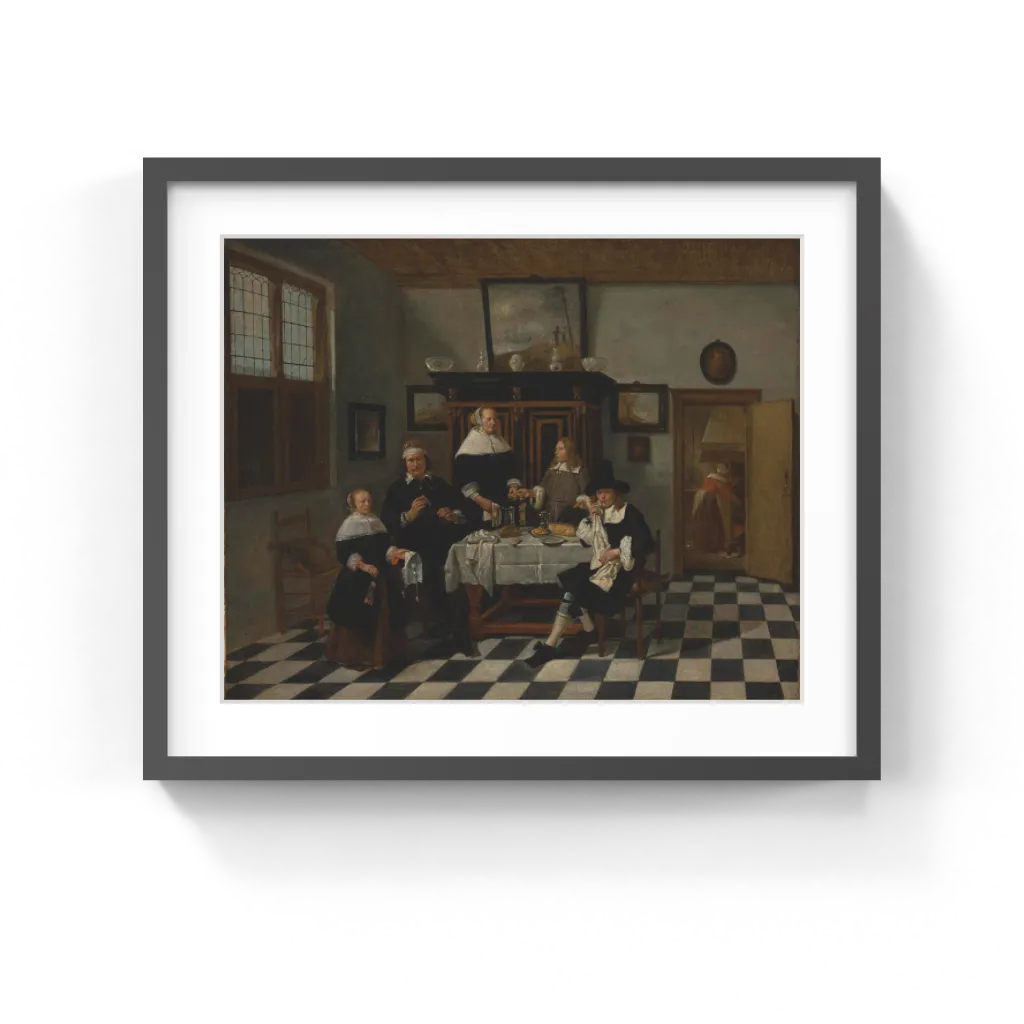 Attributed to Quiringh Gerritsz. van Brekelenkam (Dutch, after 1622–about 1669) Just finishing a Sunday meal, the members of this well-to-do family may be getting ready to return to church. The mother hands a prayer book to the younger of the boys, and the little girl holds her freshly starched cap and fan. Quiringh Gerritsz. van Brekelenkam appears to have combined a family portrait and a genre scene with a moralizing message.