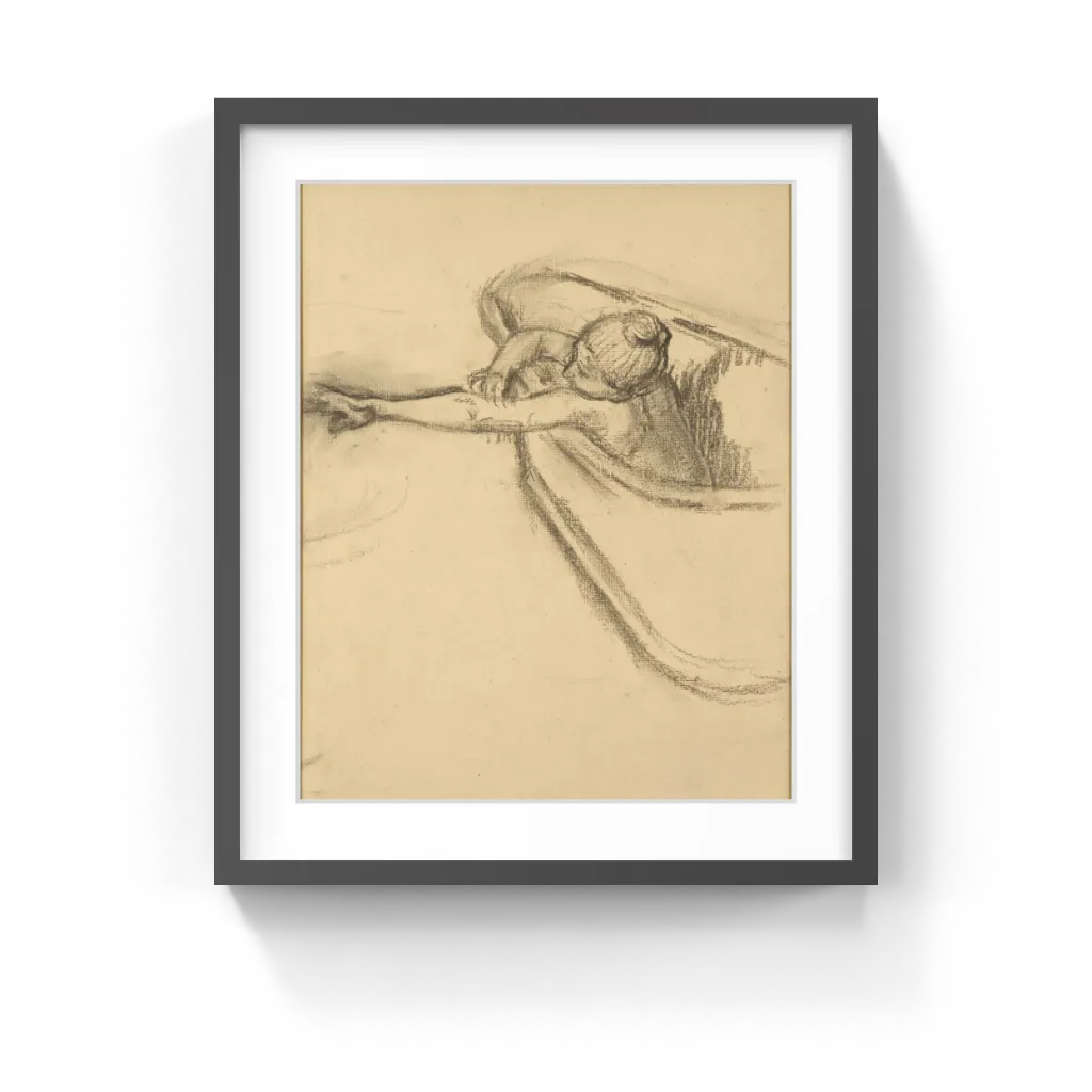 Edgar Degas (French, 1834–1917) In this late drawing, Degas portrays one of his most iconic subjects, a woman bathing. Leaving much of the paper blank, the artist isolates the figure to underscore the intimacy of the scene. However, with the sharp recession of the bathtub and slight perspective from above, Degas also indicates that the bather is not alone. Further, by depicting her from behind, Degas offers the possibility that the woman does not know she is being watched. With this choice, both the artist's and our status as observers is called into question: are we viewers or voyeurs?