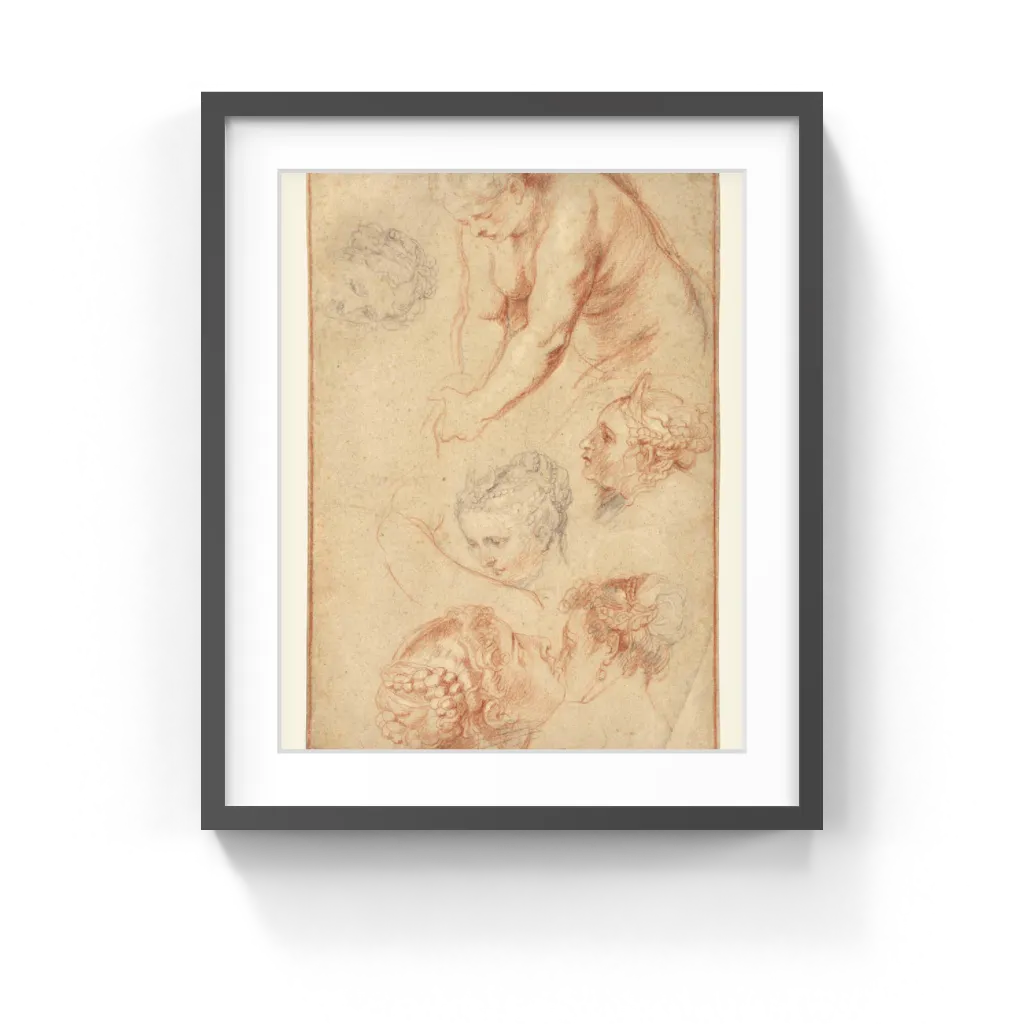 Peter Paul Rubens (Flemish, 1577–1640) On a diplomatic mission to Spain in 1628, Peter Paul Rubens visited the royal palace in Madrid. Admiring three paintings by Titian that hung in adjacent rooms, he quickly sketched some of the profiles of various women he saw portrayed, intermingling