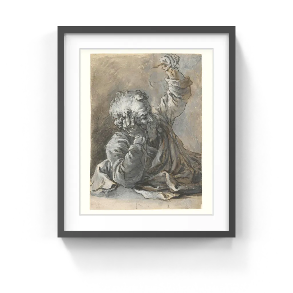 altarpieces and other religious works. This drawing, which may represent one of the four Evangelists, demonstrates the artist's ability to fuse an expressive, earthy realism with elegance and monumentality. The bold use of black pen and white