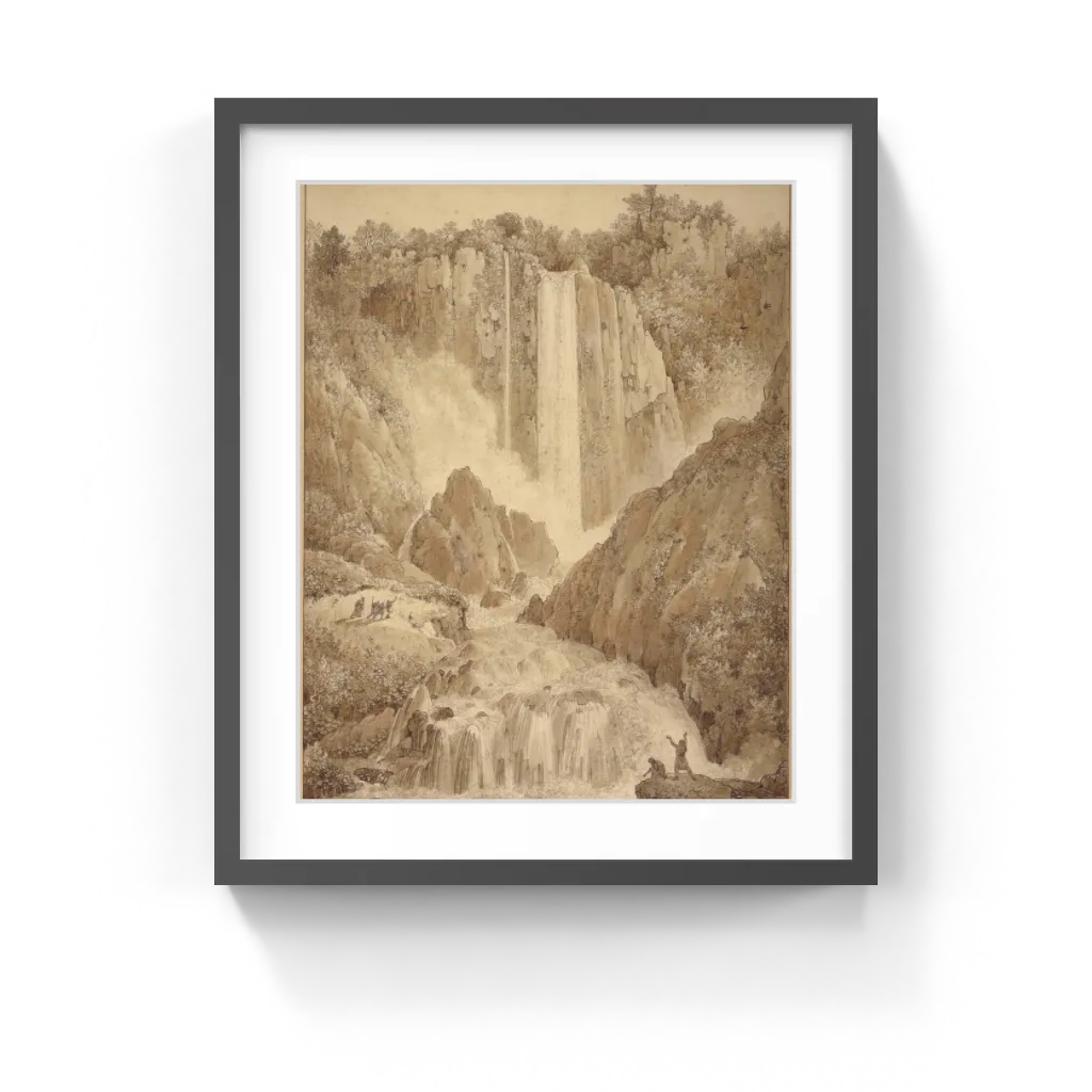 References to antiquity were typical in the work of Neoclassical artists, but the ancient figures here also may refer to the falls' origin, when Roman irrigation diverted the Velino River into the Nera in 271 B.C.