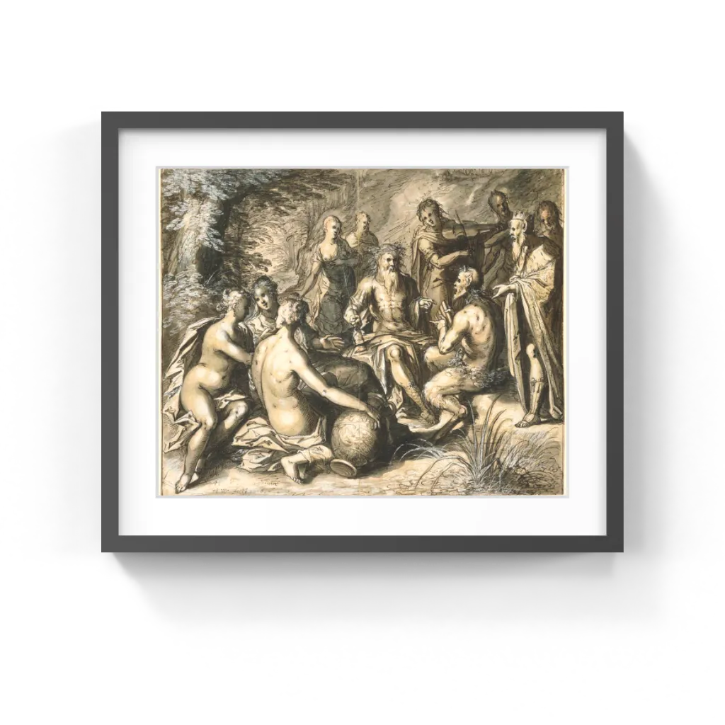 heightening on the foliage at the back. Sweeps of wash give form and volume to the bodies of the nymphs.