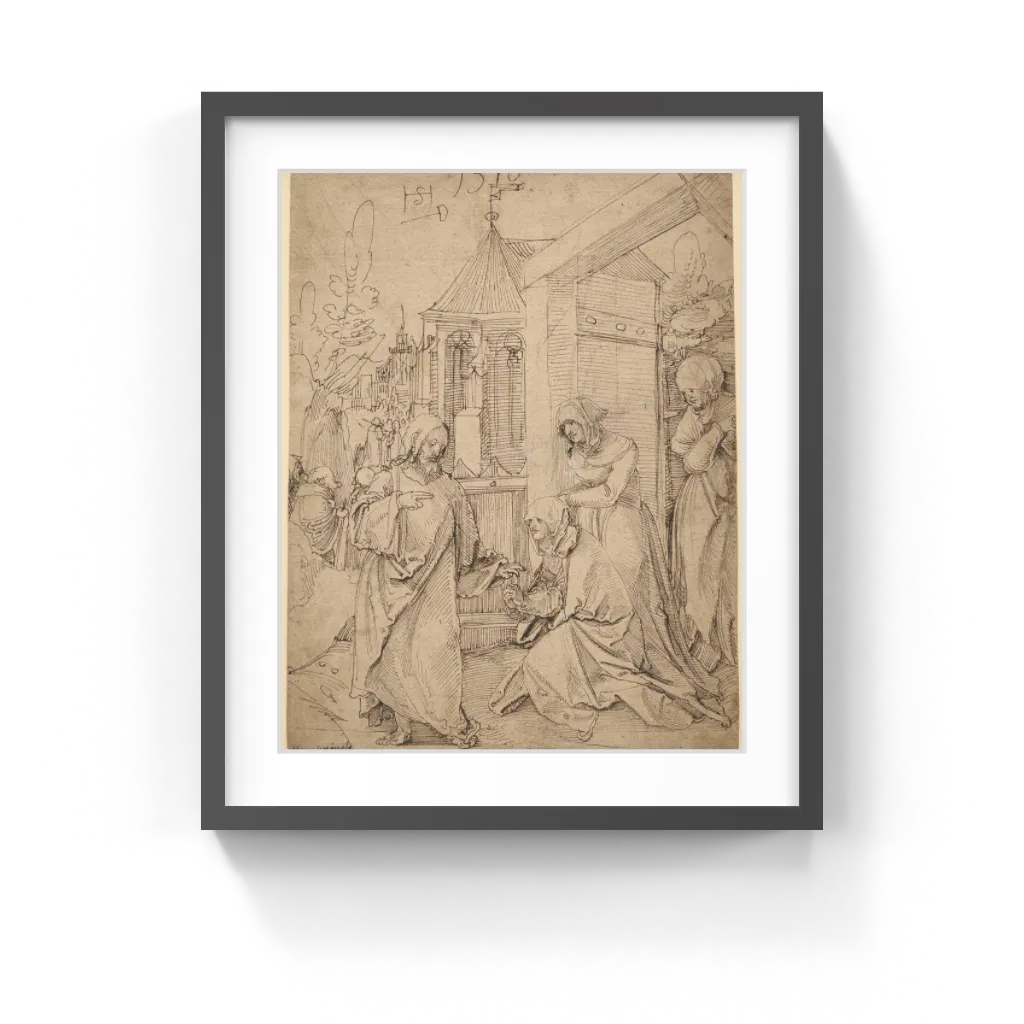 Hans Schäufelein (German, 1480/1485–1540) Copying his teacher Albrecht Dürer, who produced a similar woodcut, Hans Schäufelein set this scene from the life of Christ in contemporary rather than ancient times. A Gothic chapel forms the backdrop as Christ bids farewell to his mother, the Virgin Mary. As she kneels on the ground with hands clasped, Mary and Martha of Bethany join her, both bewailing Jesus' imminent departure.