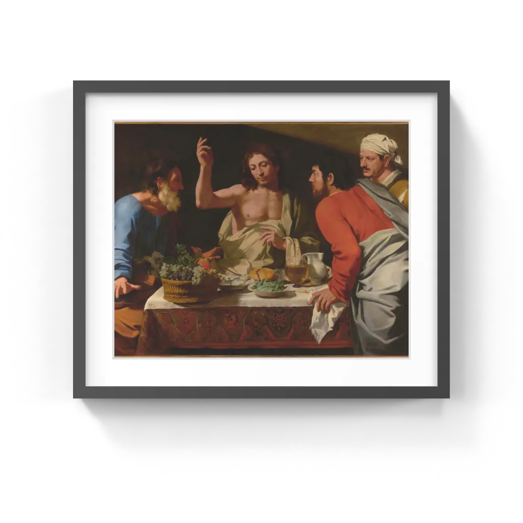 Bartolomeo Cavarozzi (Italian, 1587–1625) As the innkeeper looks on, the resurrected Christ reveals himself to his apostles Cleophas and Saint Peter, as described in the Gospel of Luke: "When he was at the table with them, he took bread, blessed and broke it, and gave it to them. Then their eyes were opened, and they recognized him." The artist heightens the scene's tension by positioning the table at the very front of the picture plane, hemming in the substantial figures.