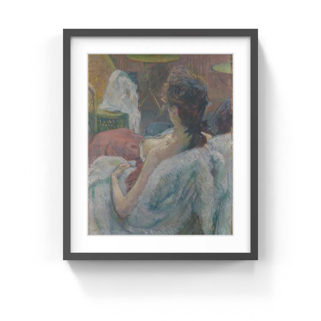 Henri de Toulouse-Lautrec (French, 1864–1901) Probably painted from life, a semi-clad woman rests with her face hidden and her breast and shoulders exposed. This viewpoint--with the woman observed from above and behind--emphasizes her submissiveness and the spectator's control. The row of small tables and chairs implies a less-than-private setting, perhaps a cafe or brothel. Henri de Toulouse-Lautrec explored the worlds of the theater, the cabaret, and the brothel--what the poet Charles Baudelaire called "the pleasures of Parisian life." Edgar Degas's series of pastel bathers, which were exhibited at the eighth Impressionist exhibition in spring 1886, may have inspired this particular subject and unusual angle of view.