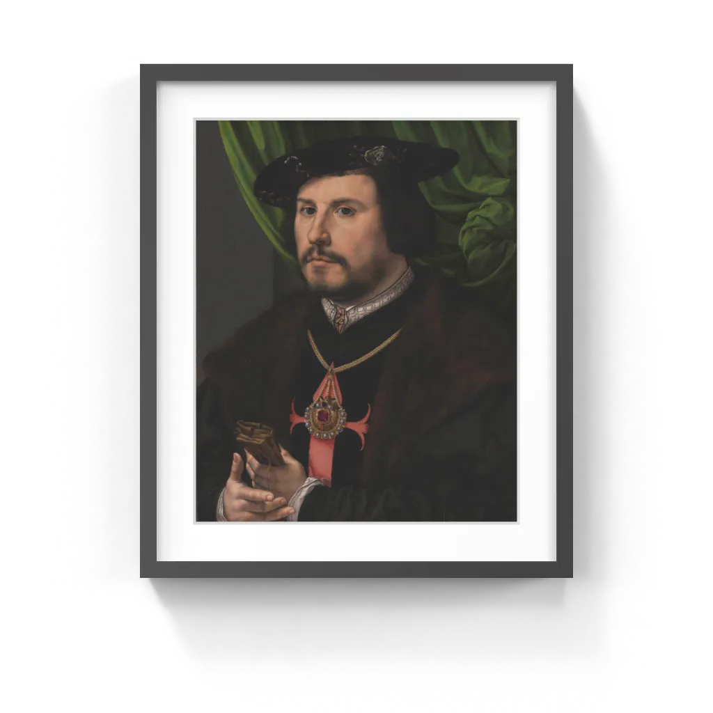 As an artist to several courts, Jan Gossaert traveled widely throughout Europe and became one of the first painters to disseminate the Italian Renaissance style in the Netherlands. In this painting, Gossaert combines psychological insight, keen observation of form, and a facility for imitating surface textures to create a portrait that is both imposing and believable.