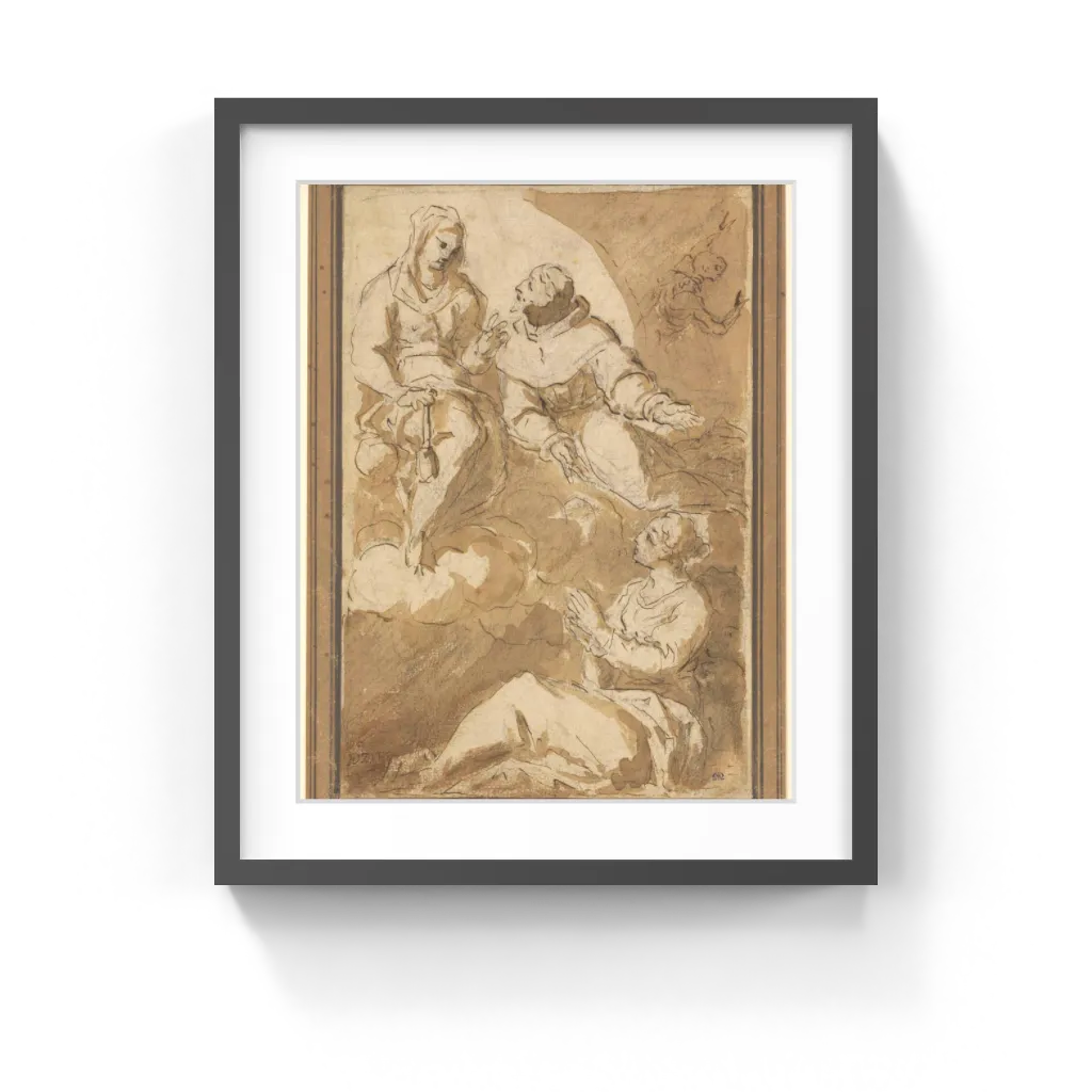 Attributed to Juan Martín Cabezalero (Spanish, about 1633–1673) This devotional drawing portrays an unidentified female saint experiencing a vision of a male saint, possibly