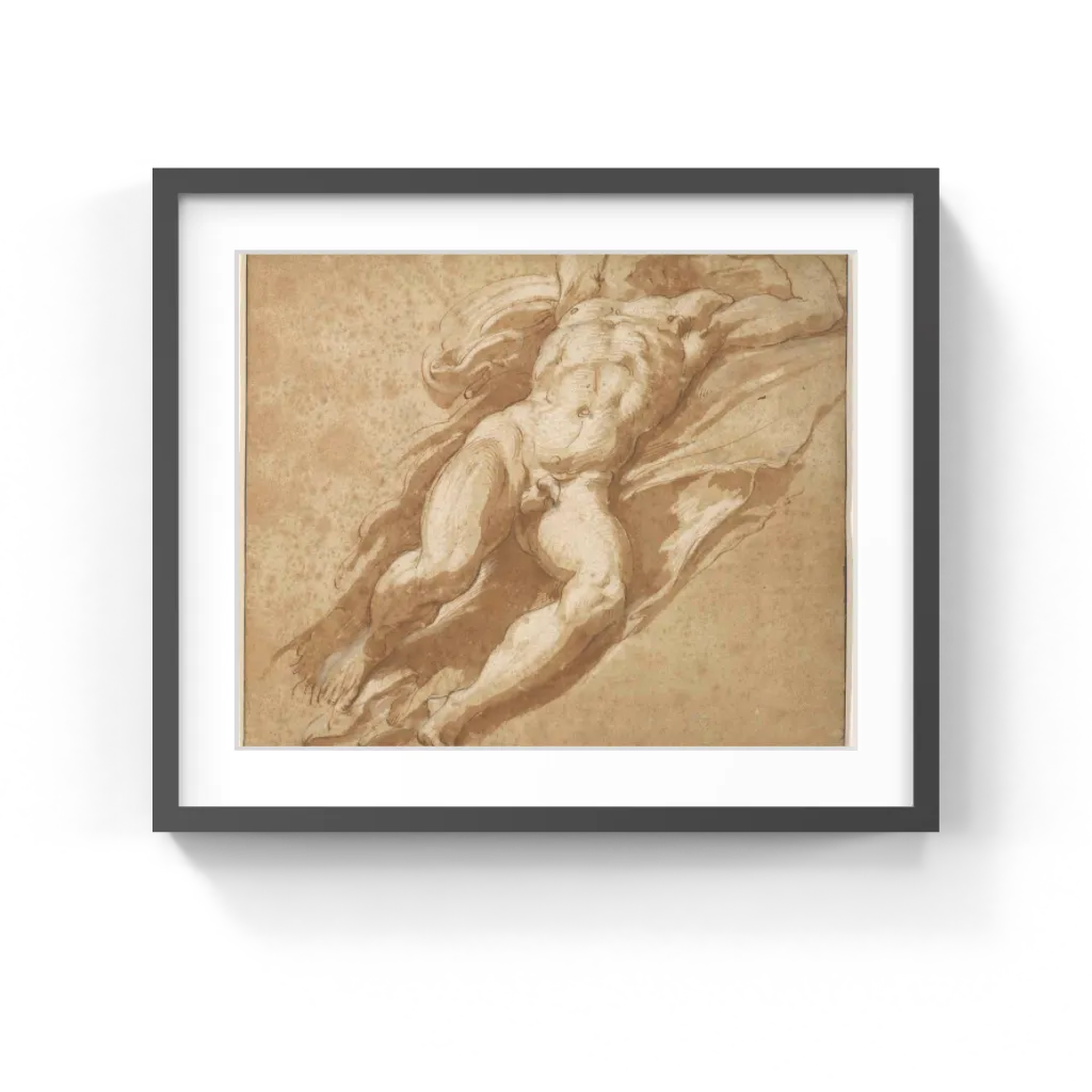 Parmigianino made this drawing in preparation for an altarpiece, The Vision of Saint Jerome, of about 1526, now in London's National Gallery, but the painted figure ended up less powerful and older than this vigorous creature. His study of monumental ancient sculpture and Michelangelo's art led to this figure's expansiveness and muscularity.