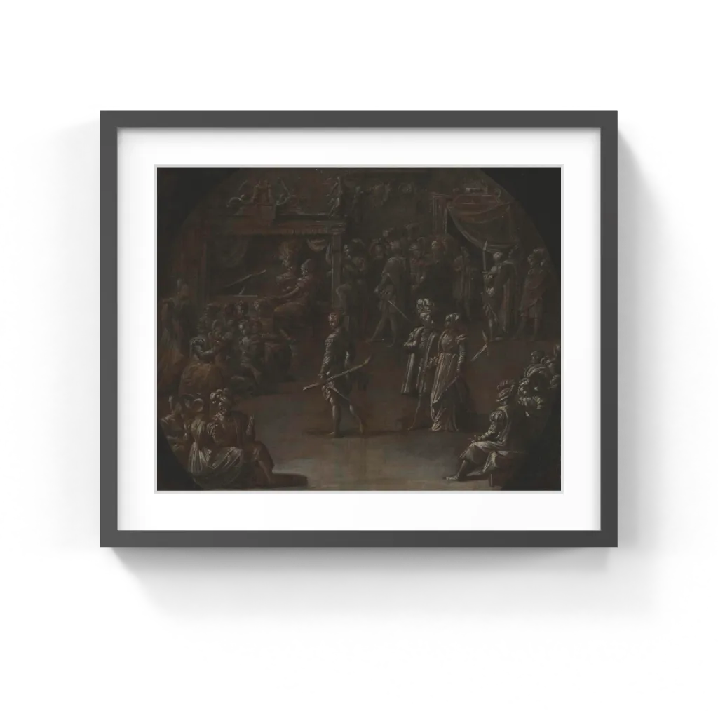 Three related studies by Nicolò, similar in size, shape, and style, also depict chivalric subjects, again possibly from the Orlando cycle. He may have used all these drawings in preparation for an Orlando cycle that he painted in the ducal palace in Sassuolo, near Modena.