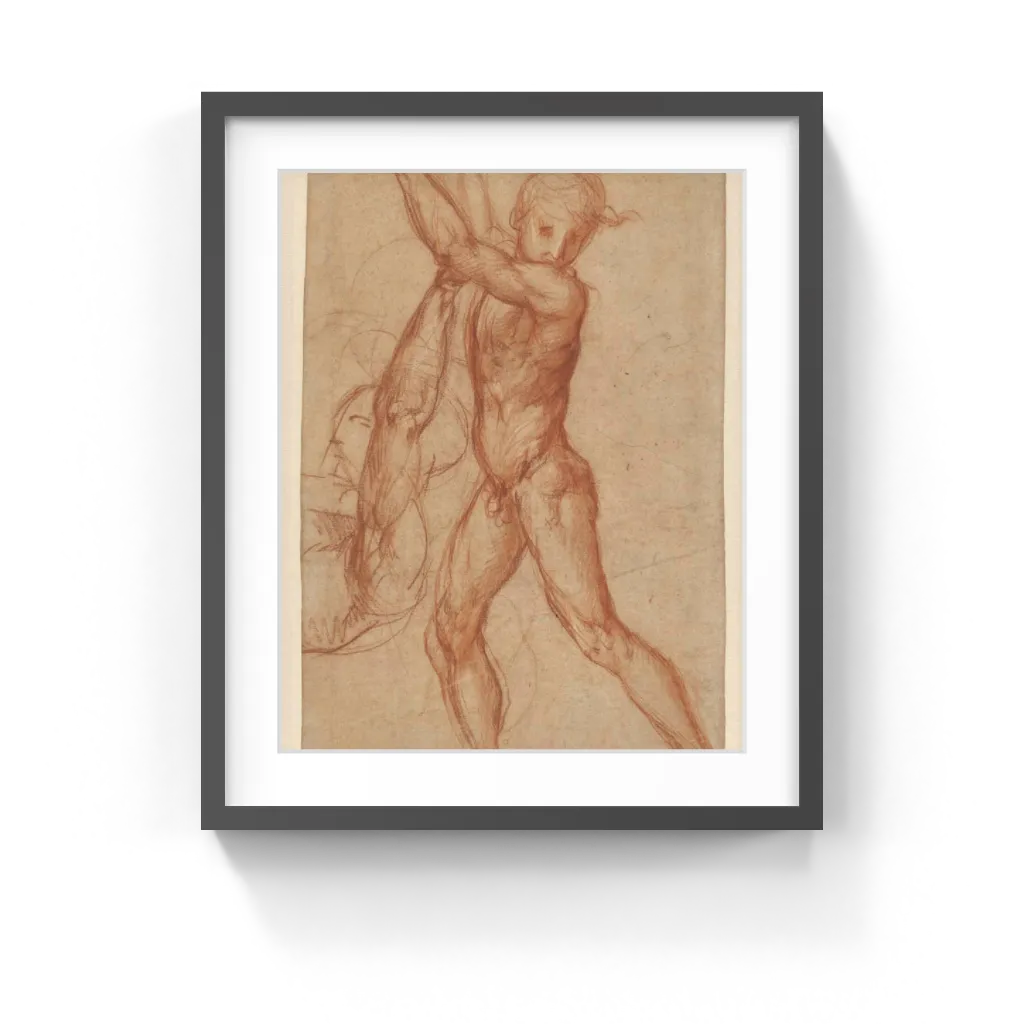 Pontormo made these drawings as preliminary figure studies for an altarpiece commissioned for a church in Florence in 1518, a work that some scholars consider the first clear manifestation of Mannerism in Italian painting. The full-length figure on the recto served as a source for the putto at the painting's top right.