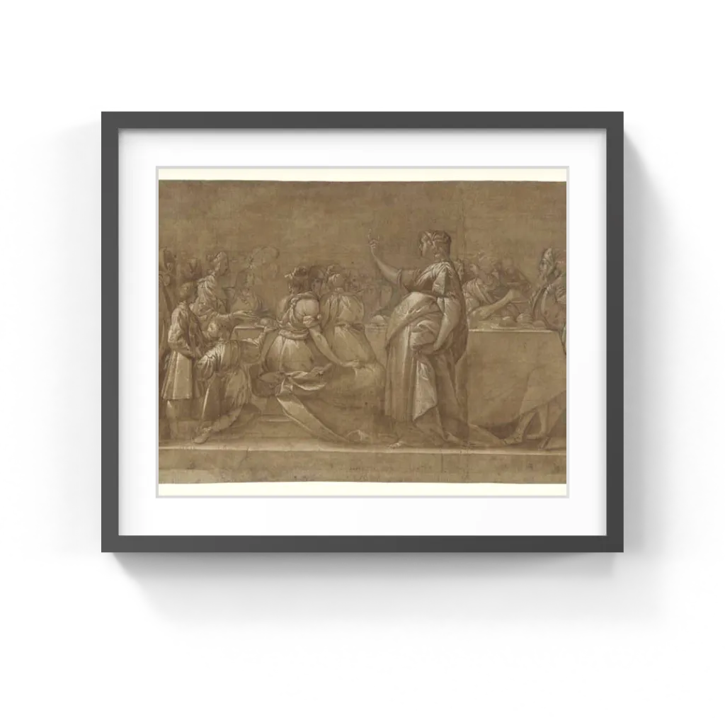 Morazzone created this large compositional study for an ambitious painting, likely commissioned by Ferdinando Gonzaga, Duke of Mantua. Despite its distinctive cast of characters, the drawing's subject has not been firmly identified. Some scholars suggest that the subject is the marriage feast at Cana, where